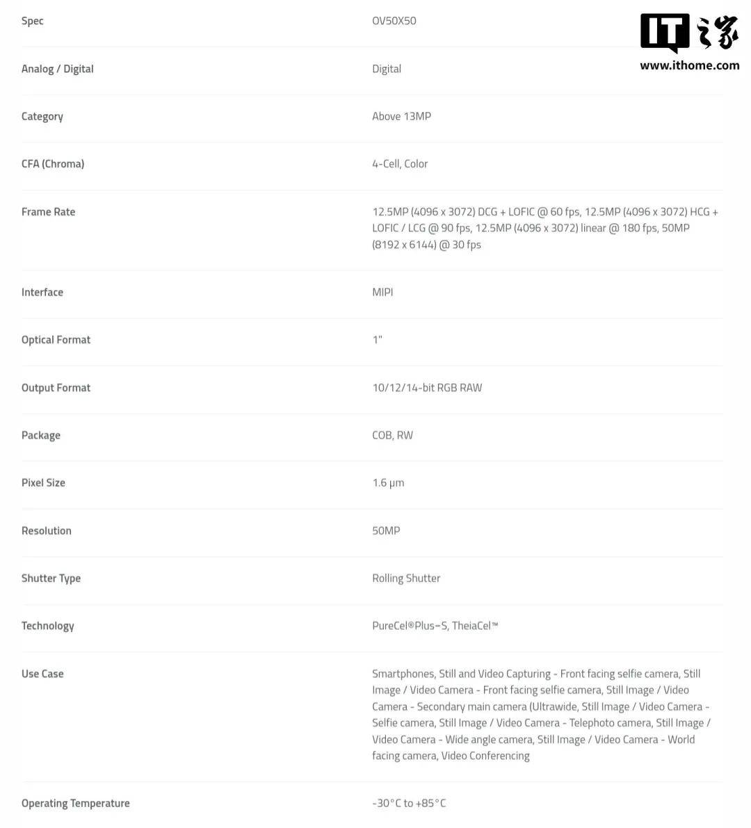 在今年 4 月 10 日,豪威宣布推出全新 5000 万像素 OV50X CMOS 图像传感器,拥有手机行业中的超高动态范围,可实现电影级视频拍摄。