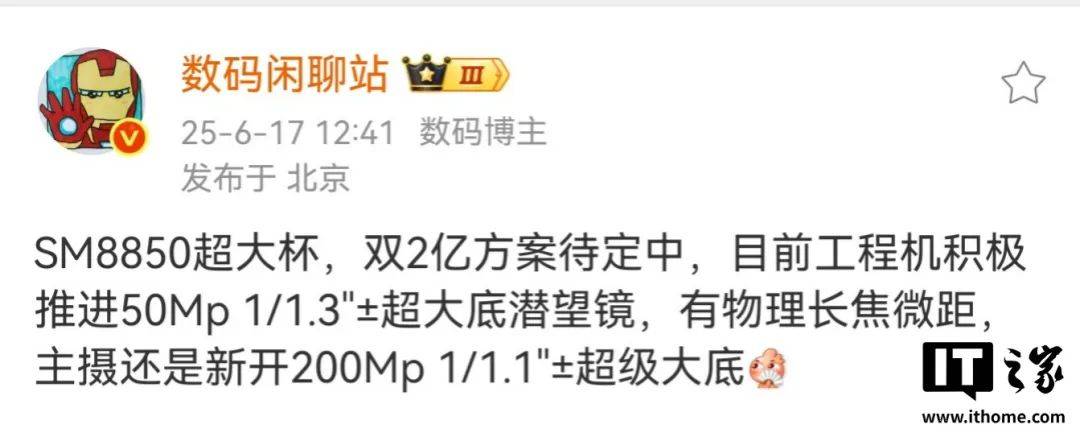 不知 IT 之家家友是否还记得,在前文微博博主的博文中有这样一句话:影像侧重点基本是长焦>主摄>超广角。