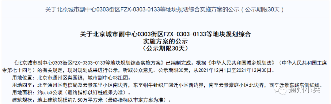 接下来,再看下此前发布的关于《北京市规划和自然资源委员会通州分局关于北京市通州区梨园镇强力家居土地一级开发项目FZX-0303-6007地块R2二类居住用地项目规划设计方案的公示》的公示。