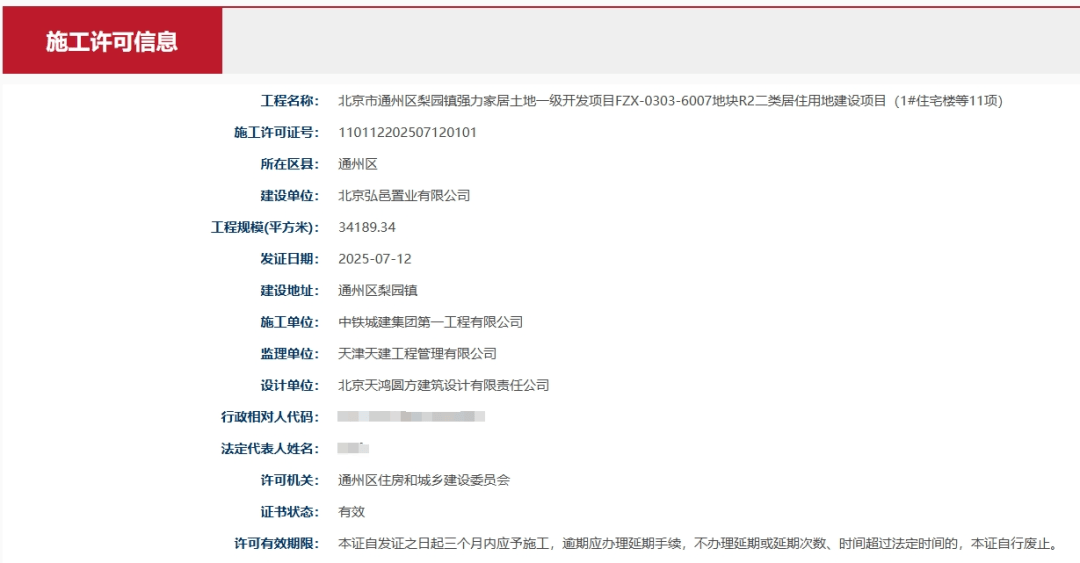 小编还了解到,不久前,市住建委发布了“北京市通州区梨园镇强力家居土地一级开发项目FZX-0303-6007地块R2二类居住用地建设项目(1#住宅楼等11项)施工许可信息”。